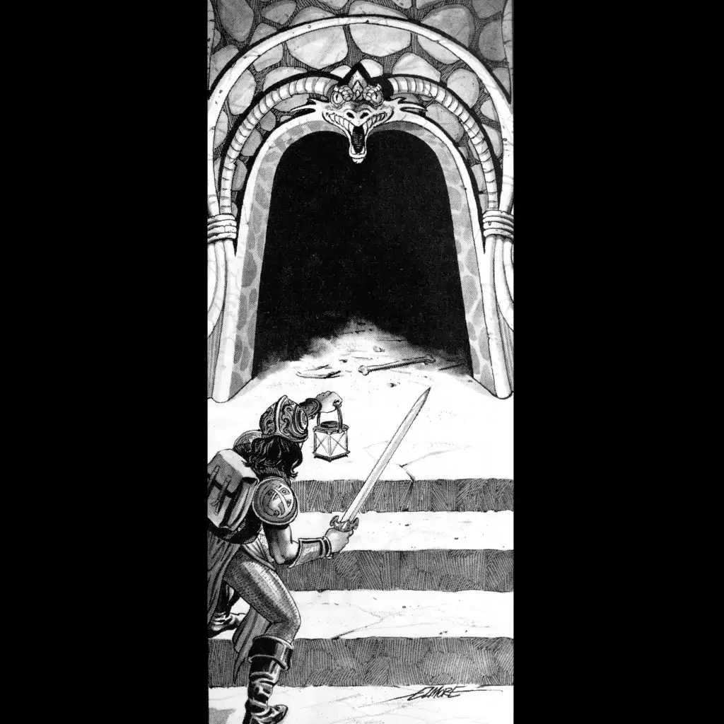 Larry Elmore and Jeff Easley deliver iconic art here. If there is a platonic ideal for fantasy roleplaying art, it can be found in the illustrations of the D&D rules boxes of the mid-80s. Is there an image that more plainly sums up the D&D experience than the one of the fighter, lantern held high, approaching the dungeon entrance? Both artists had long, interesting careers working with TSR but I love their work here more the most.