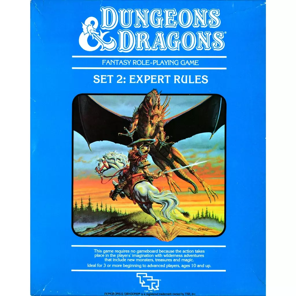 The blue box Expert Rules followed the Basic Rules in short order in 1983, taking characters from level four through 14. Where the red box was interested in dungeons, the blue box tackles the dangerous wilderness. In addition to the rules, the box includes the excellent module X1: The Isle of Dread to introduce players to the great outdoors in spectacular fashion (I covered X1 in a separate entry back in May).