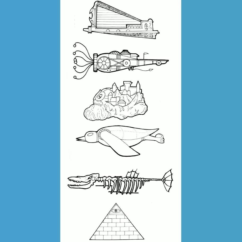 The real gem here is the Ship Recognition Guide, which details all the ships currently known in Spelljammer, and a good deal more. They range from cool to WTF, with a lot more traditional sci-fi influence than was previously present in the setting. I’ve included some of my favorites (all on the WTF end of the spectrum) in the last image. You can guess by looking at them who the crews consist of. In order: bards, gnomes, dwarves, penguin people (yes, penguin people), undead and space Egyptians (predating Stargate!). I still can’t decide if the fact that the ships directly reflect the nature of their crews is Spelljammer’s greatest strength or its greatest flaw.