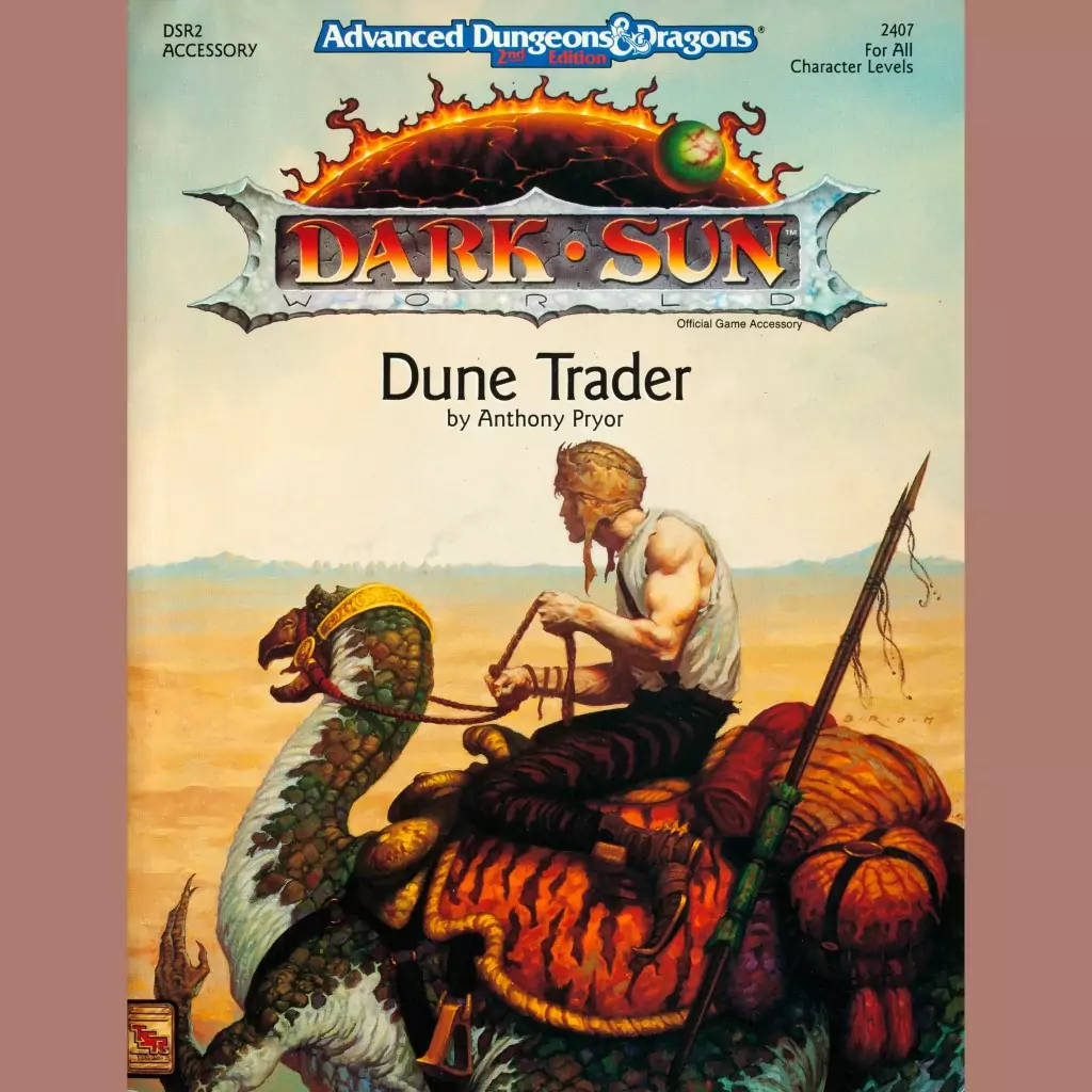 Dune Trader (1992) follows Slave Tribes (1992) as the second in a series of sourcebooks intended to open Athas up to traditional campaign play away from the core Dark Sun metastory. (Your guess is as good as mine as to whether this was the intention all along, or if it is an early sign of weakness in the popularity of the metastory). This is one of my favorite sort of RPG books: a cool idea, ripe with potential for an entirely different kind of D&D campaign, that wasn’t entirely thought out, that likely no one ever seriously used and was subsequently left unsupported after initial publication.