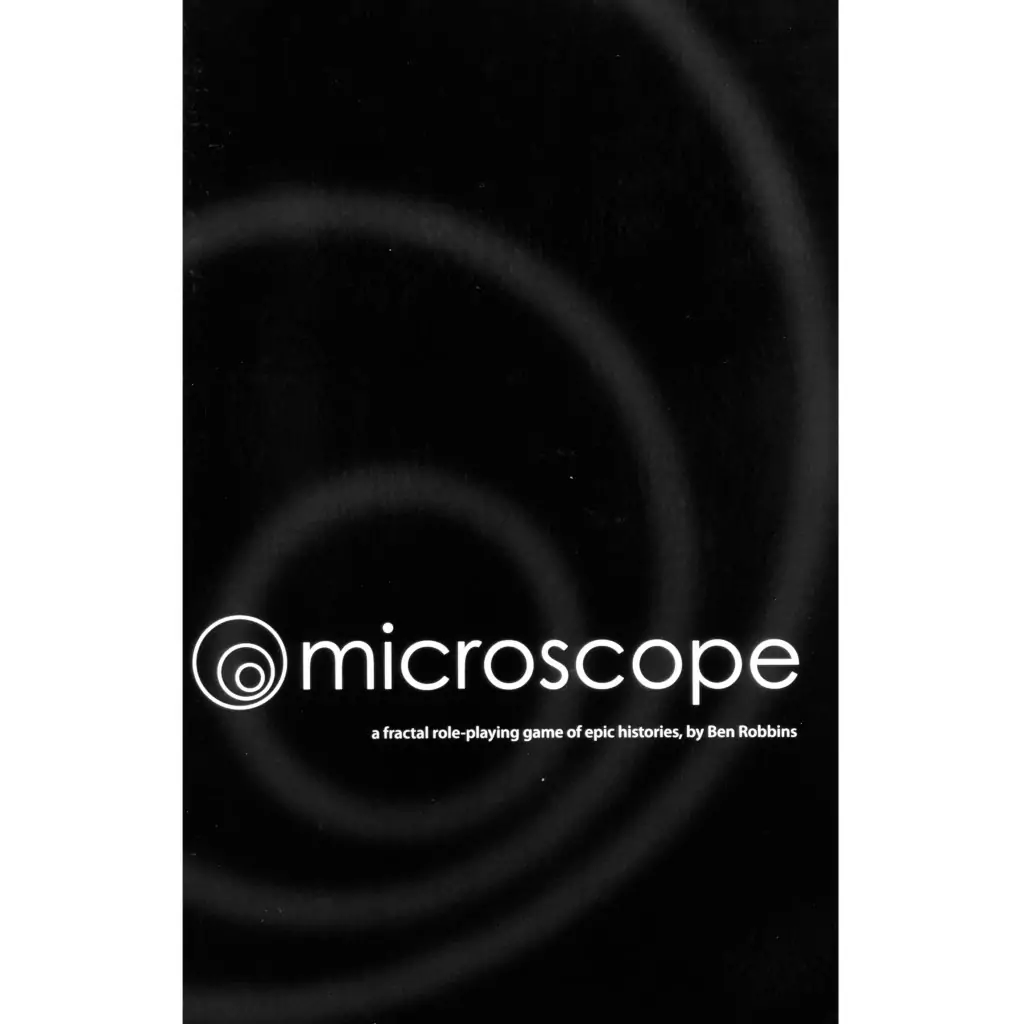 Ben Robbins makes what I think of as meta RPGs, games that use characters and stories to investigate the concepts behind characters and stories. Microscope was his first RPG and it is an unusual one: It is a collaborative, GM-less, zero prep, non-linear game about exploring the history of a fictional society. Sounds simple right? But it is!