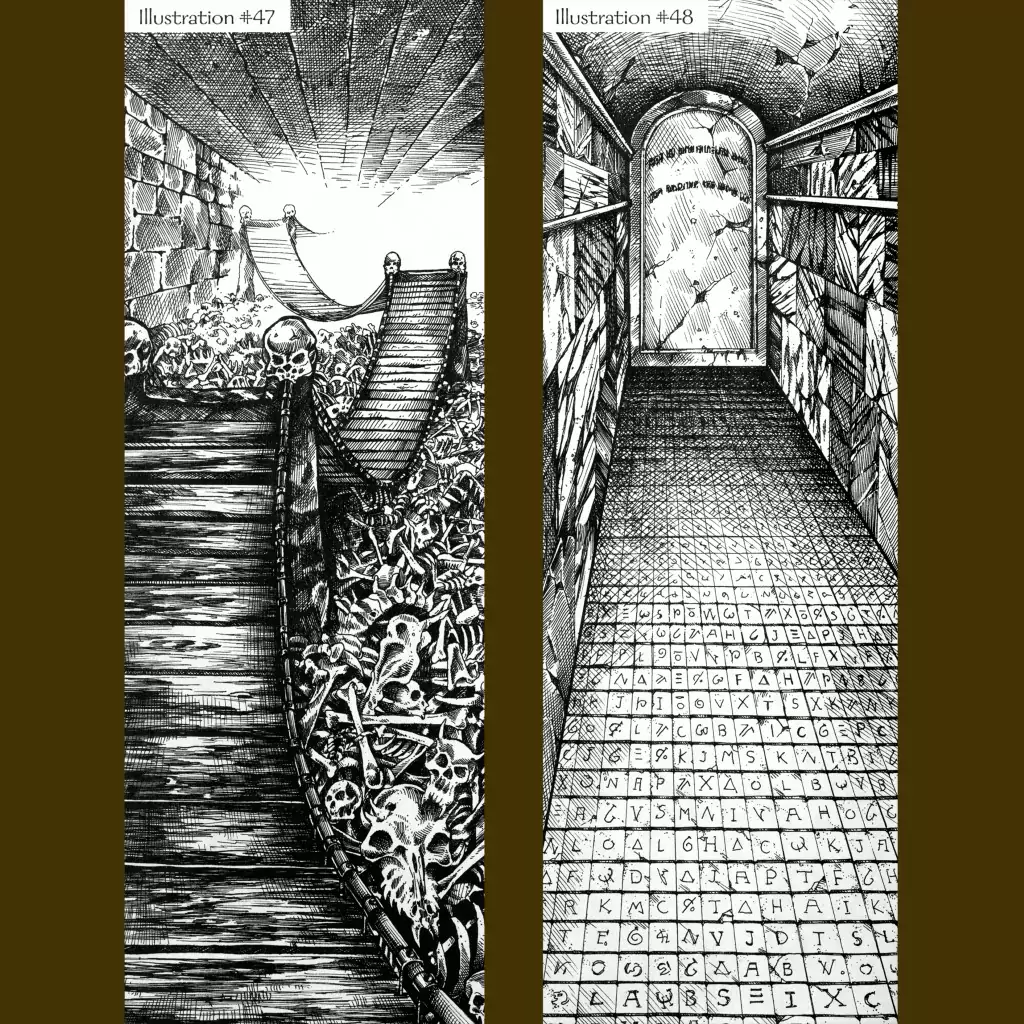 Like its predecessor, Return has an illustration book, which is just as good, if maybe a little better than the original. They feel helpful, rather than an extension of the traps, but I could be wrong as I’ve not run this – players always surprise you. I’m a big fan of the one-two punch of Arnie Swekel and (the late) Glen Angus here. The illustrations for the campaign book are pretty great, depicting a large adventuring group gradually getting whittled down page by page to just three characters at the end.