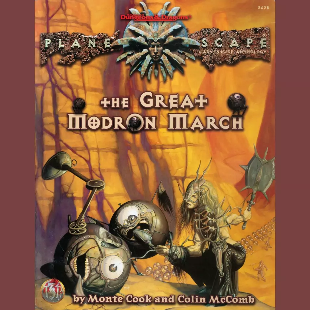 The Great Modron March is a Planescape adventure anthology that contains a series of loosely linked scenarios based around the titular march. The Modrons, bizarre creatures of Order, march through the Outer Planes once every 300 years or so, but for mysterious reasons, this one kicks off early, causing an unprecedented amount of chaos (cosmic irony!). The scenarios in the book explore the spectrum of effects the march has on those in its path and, eventually, a larger mystery becomes apparent to the players.