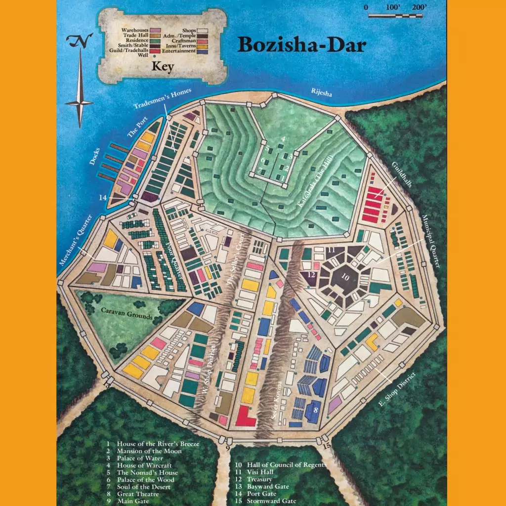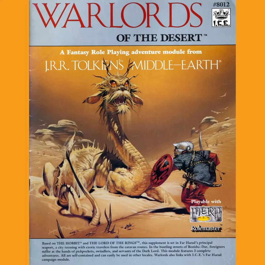 I mentioned that one of the prime preoccupations of MERP was the Witch-King of Angmar. Another large scale obsession was detailing the vast southern reaches of Middle Earth only alluded to by Tolkien. Warlords of the Desert contains three adventures set in and around the seaport of Bozisha-Dar, in Far Harad and is a weird mix of Arabian Nights and Lord of the Rings.