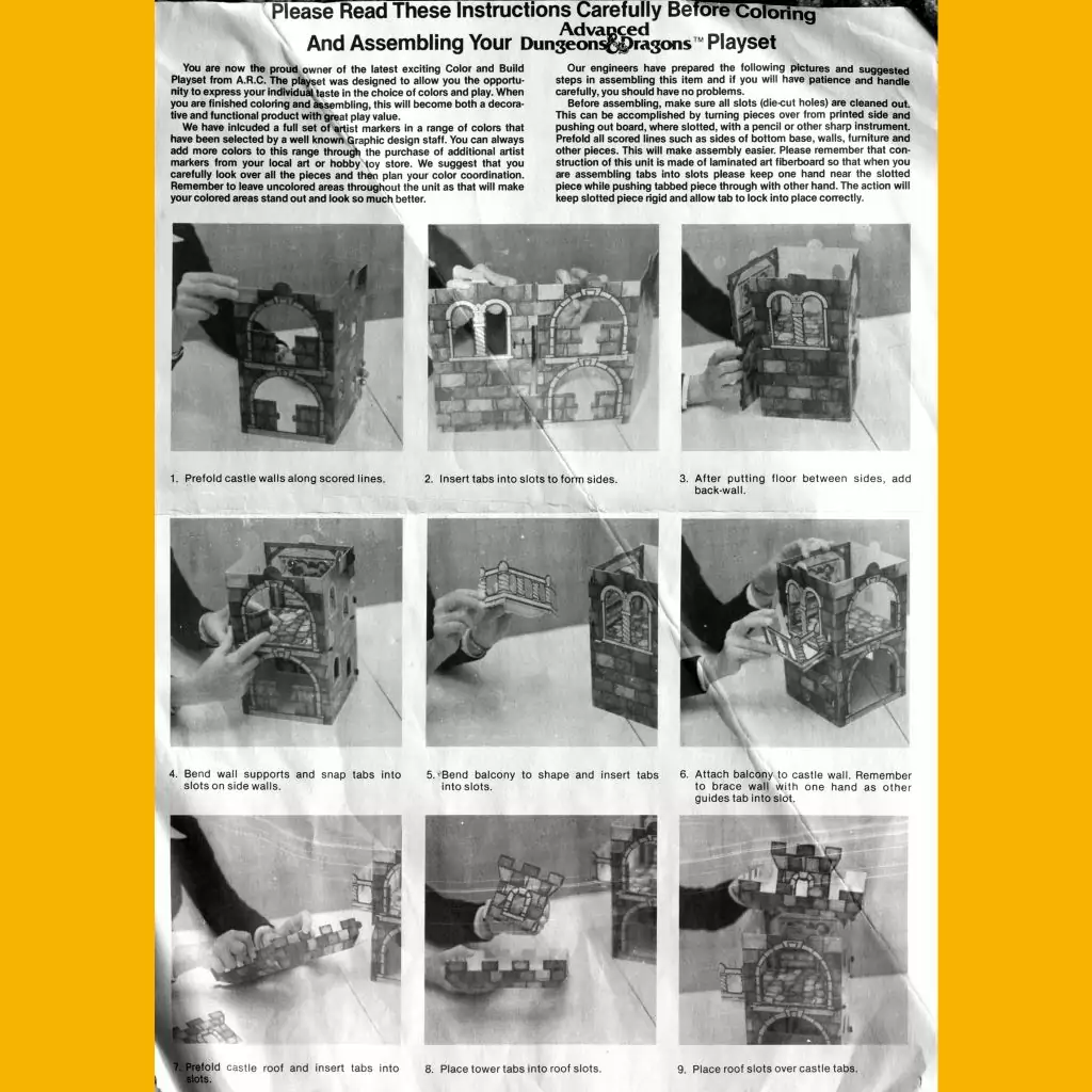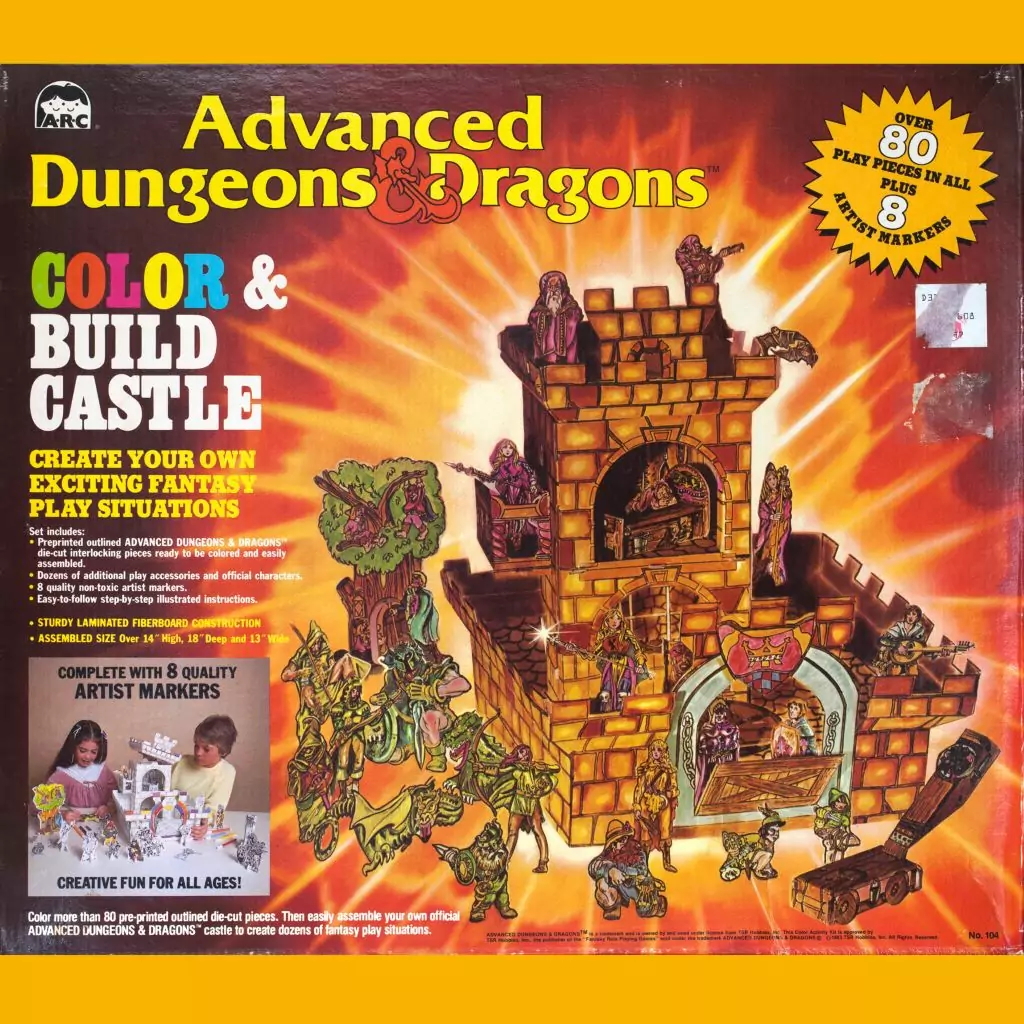 More than 30 years later, 1983 keeps giving up new secrets. I feel like I am pretty well-versed in the weird tie-in merchandise that TSR licensed at the crest of D&D’s first pop culture moment, but I never heard of the Advanced Dungeons & Dragons Color & Build Castle before. This is some prime grade licensed kid stuff junk right here, let me tell you.