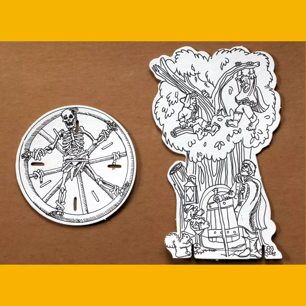 What we have here is a stack of stiff white cardboard that you punch out, color and fold into a castle. This is pretty dope, and I would have loved this when I was five or six. Unfortunately, not a lot of attention was paid during the die-cutting, so lots of misalignments. I feel like this is pretty par for the course of licensed craft merch for the time.