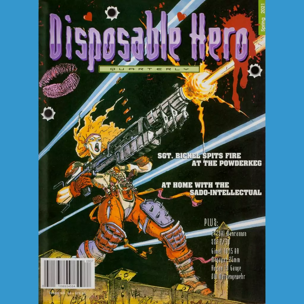 We’ve got simulation transcripts in which the Marx Brothers are captured and tortured by a super group. We’ve got a transcript of a TV reality show called Combat Combat Combat that is basically filmed in a live war zone. We’ve got excerpts from Disposable Hero Quarterly, a gun magazine (ha, like they’d have printed magazines in the future) that oscillates between conspiracy theory-addled militia screeds and literal gun porn.