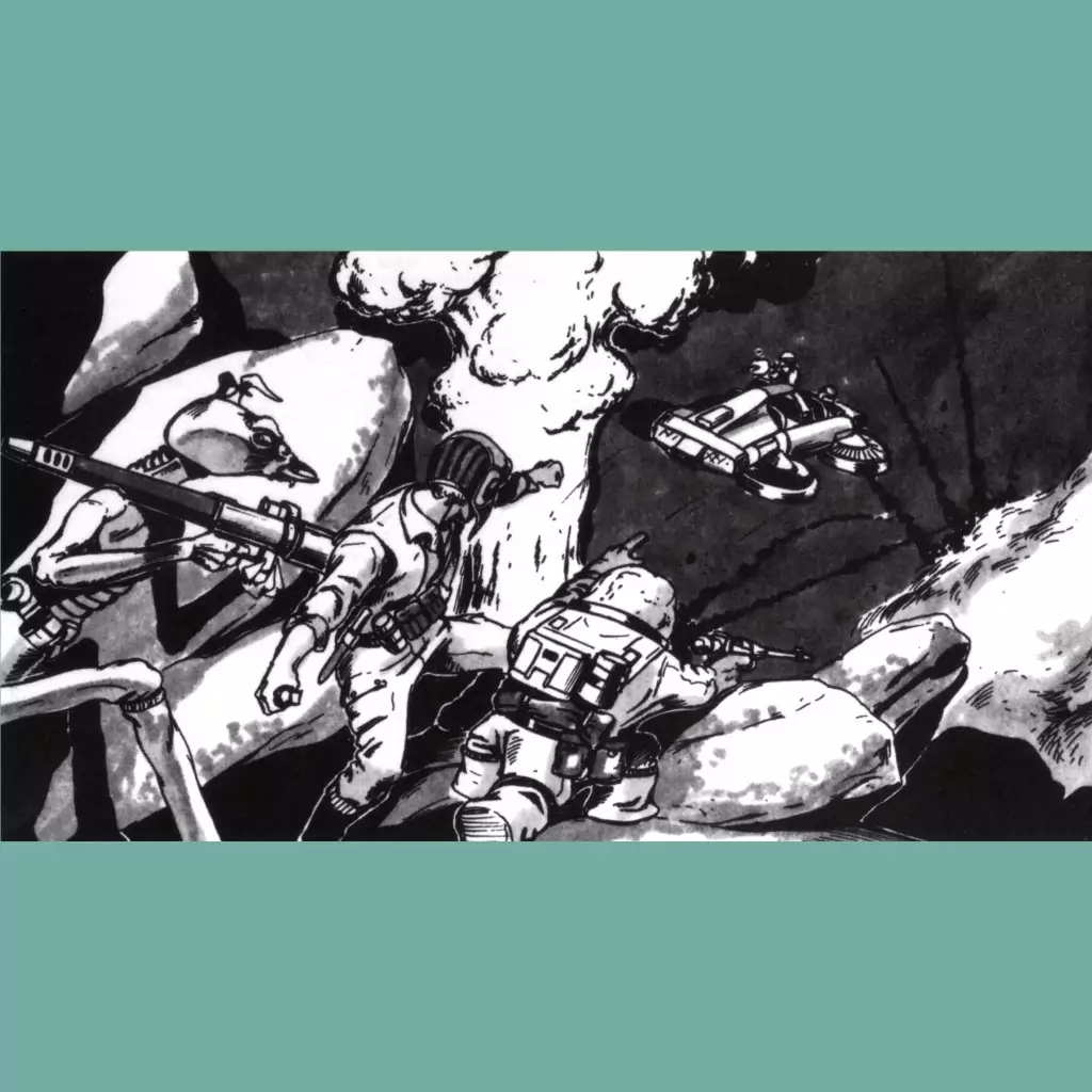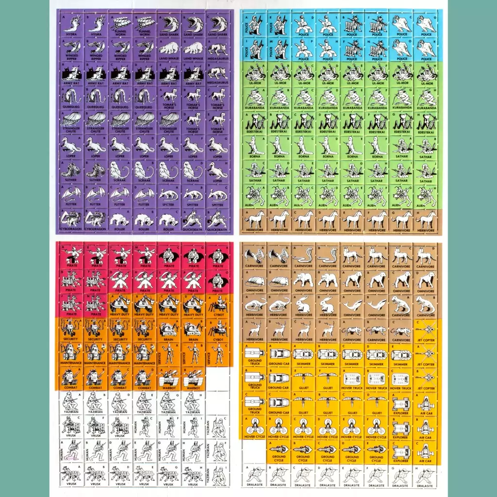 Anyway, let’s talk about Larry Elmore’s fantastic cover for a second (which, admittedly, you can see more fully in its glory in yesterday’s post). I love love love this painting – it is probably the most iconic non-D&D piece of art TSR produced, and it stands its ground against a lot of the D&D art too, I think. I love that the dude looks basically like a Televiper from GI Joe, I love the fringe on the lady’s boots (so 80s) and I love whatever that monkey thing is (more on that in a second). It totally sells the drama and danger of being marooned on a strange planet. **chef’s kiss**