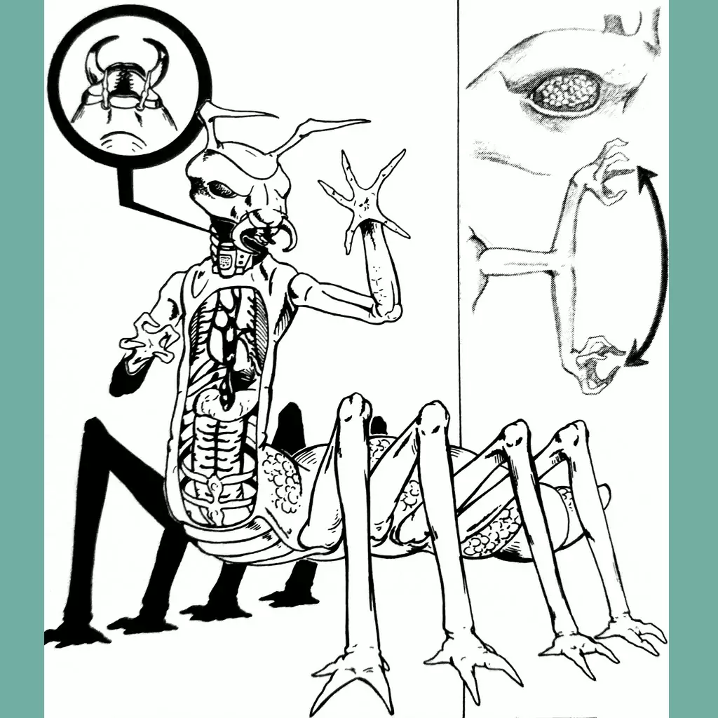 My favorite thing about Star Frontiers (and any sci-fi thing), though, is the aliens. The playable ones are WEIRD. Vrusk are long-bodied, insectoid capitalists, Dralasites are basically giant sentient amoebas with weird senses of humor and Yazirians are these maniac gliding apes. And the villains, the mysterious Sathar, are weird, buff worm creatures that occasionally ride dinosaurs. All of them make a distinct contrast to pretty much every humanoid-centric sci-fi thing of the period (and a lot after) and I love it.