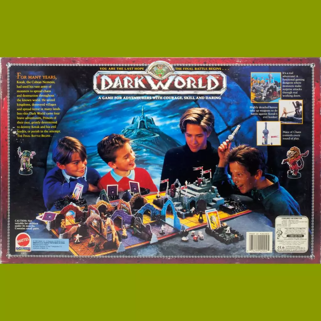 Dark World (1992), from Mattel, is one of several games from the early 90s that attempted to capitalize on the popularity of HeroQuest, both in vibes and looks and basic play.