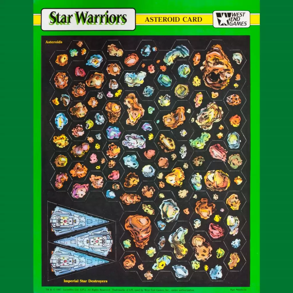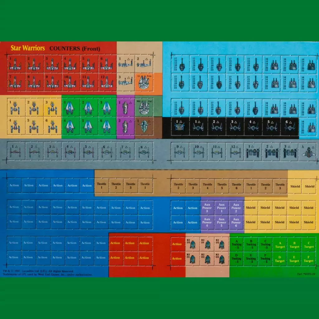 Star Warriors (1987) was part of the launch of the West End Games Star Wars RPG. It was intended to be both a stand alone tactics game and an extension for the RPG. The mechanics mesh pretty seamlessly with those of the RPG, so you could easily throw this on the table to play out your starfighter dog fights. A number of published Star Wars scenarios included counters for just that purpose.