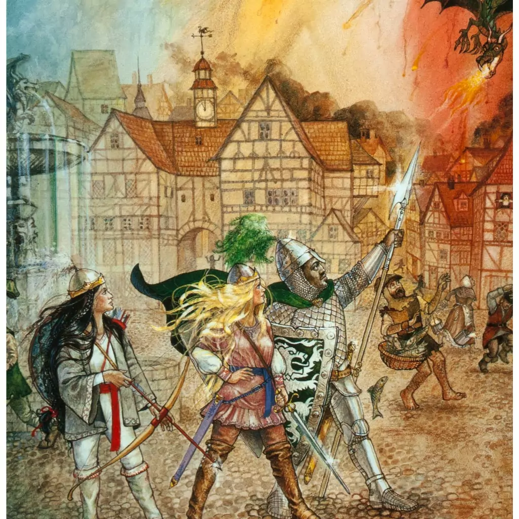 The monstrous, 3” box is jam packed with stuff. There’s 7 books – a player primer, a rulebook, a player’s handbook, a GM’s guide and 3 adventure modules. There are pads of character sheets and game worksheet, a bunch of character counters, dice and, originally, a tape cassette (the audio is online, but I have my limits and have not listened). Its all high quality for the time. There isn’t much interior art, but the color cover illustrations by Christian artist RJ Watson are rather lovely in an old fashioned illustrator way.