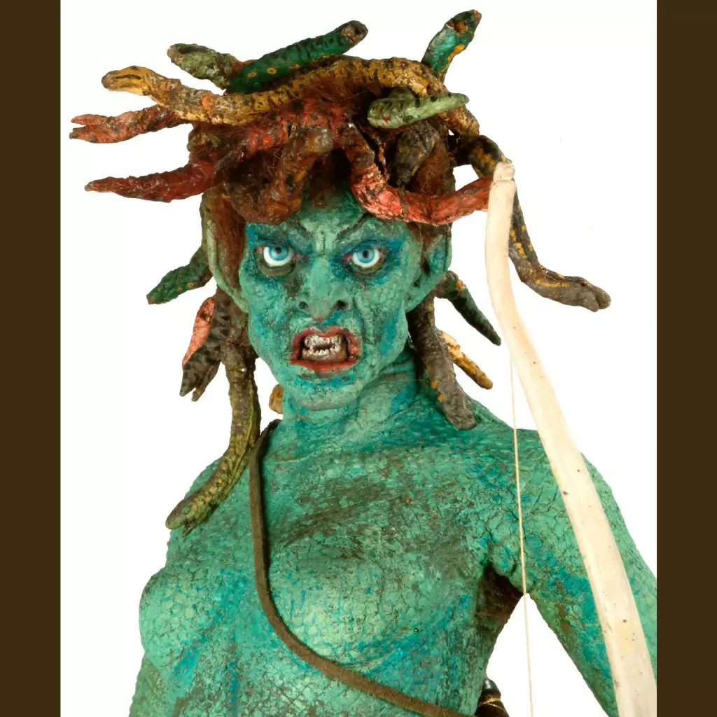 Part of what makes Harryhausen’s monsters so memorable for me is that they are unusually distinct – I think you’d be hard pressed to look at a monster in most movies and guess correctly who designed it. Not so with Harryhausen. His monsters are immediately recognizable. And strange! That island cyclops is one of the oddest creatures to ever show up on film. As terrifying as the Kraken is, it is also doofy and kind of noodly in an endearing way. And I dare you to suggest a more terrifying and alien creature than his Medusa.