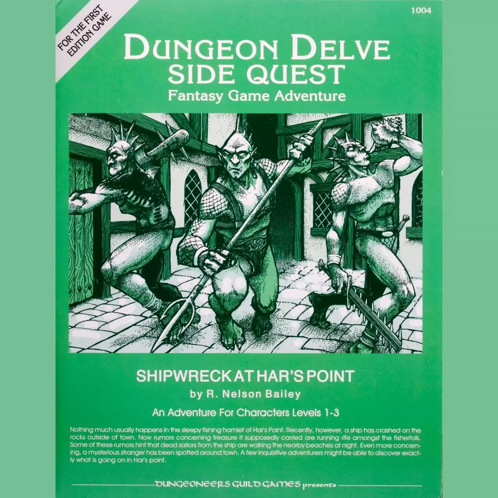 This is the first Dungeon Delve Side Quest, Shipwreck at Har’s Point (2019), a loving homage to the spirit of the U-series modules. Seaside town? Check. Sahuagin? Check. Plot? Well, actually, now that you mention it, despite the other Dungeon Delve modules having minimal plot, this one is primarily plot. It is pretty good, though very basic, and, considering I am pretty ambivalent about the U-series modules, I think that is saying something.
