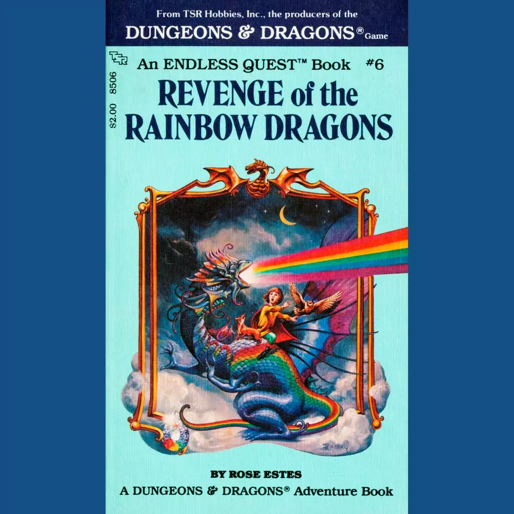 Sigh. Not sure why I did this to myself when the GrailQuest and Lone Wolf books are literally on the same shelf, but here we go with some more Endless Quest gamebooks. This is the sixth: Revenge of the Rainbow Dragons (1983). Its terrible!
