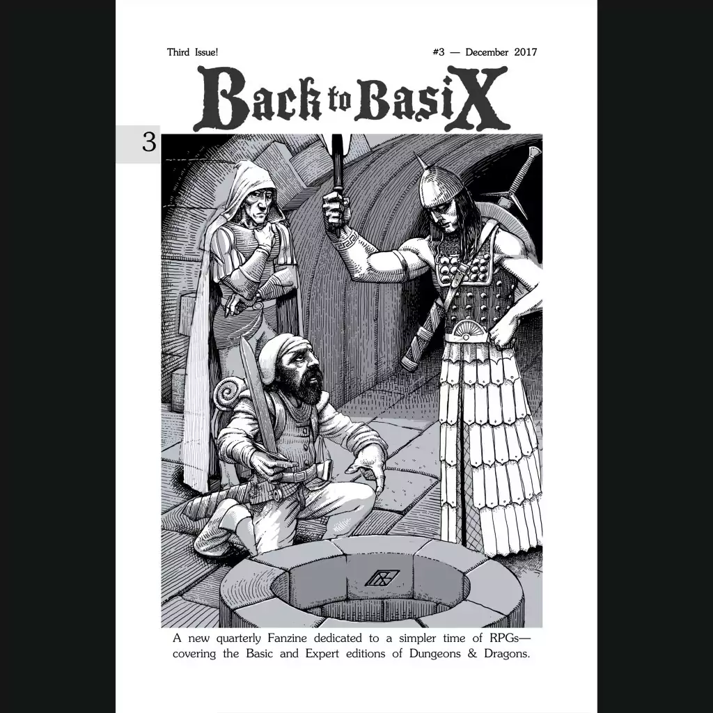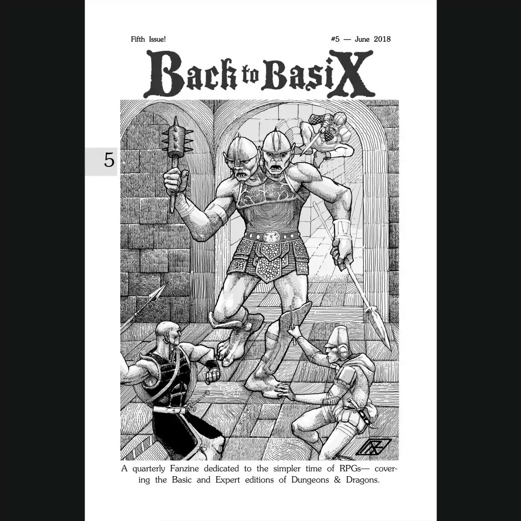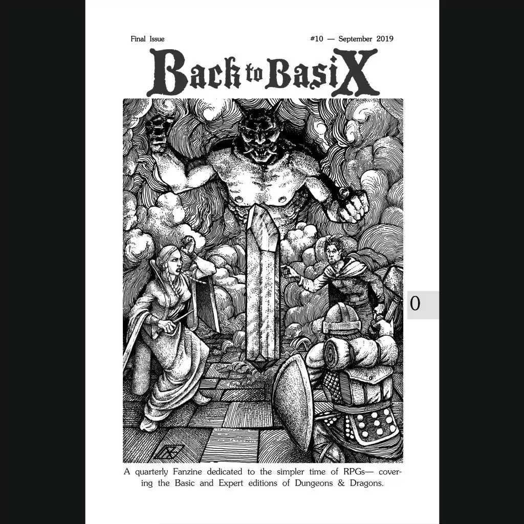 Back to BasiX was a fanzine dedicated to B/X Dungeons & Dragons that ran for ten quarterly issues from 2017 to 2019 (and I believe issue 11 is in the works and maybe out at this point). This hardcover (2021) collects all ten issues and sticks them behind a fantastic new cover illustration by Matthew Ray.