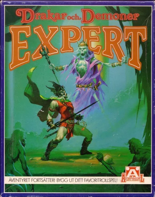 In 1985, the first expansion box set was published, called Drakar och Demoner Expert (EDD). It brought in more advanced (complicated) rules and switched from the percentile die to a d20. From this point on, most published material had stats for EDD. It also contained separate magic rules with specialty schools. The expert box also brought in a lot more equipment and skills, you could say it’s the plus-menu version of the original game.