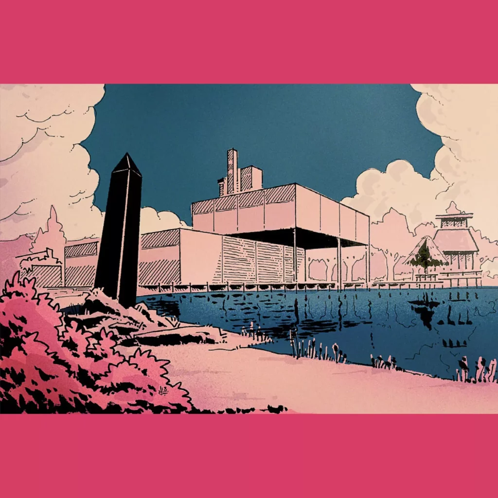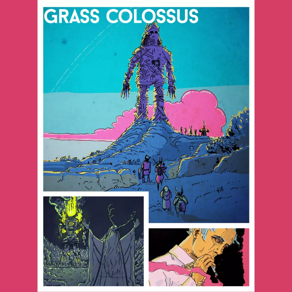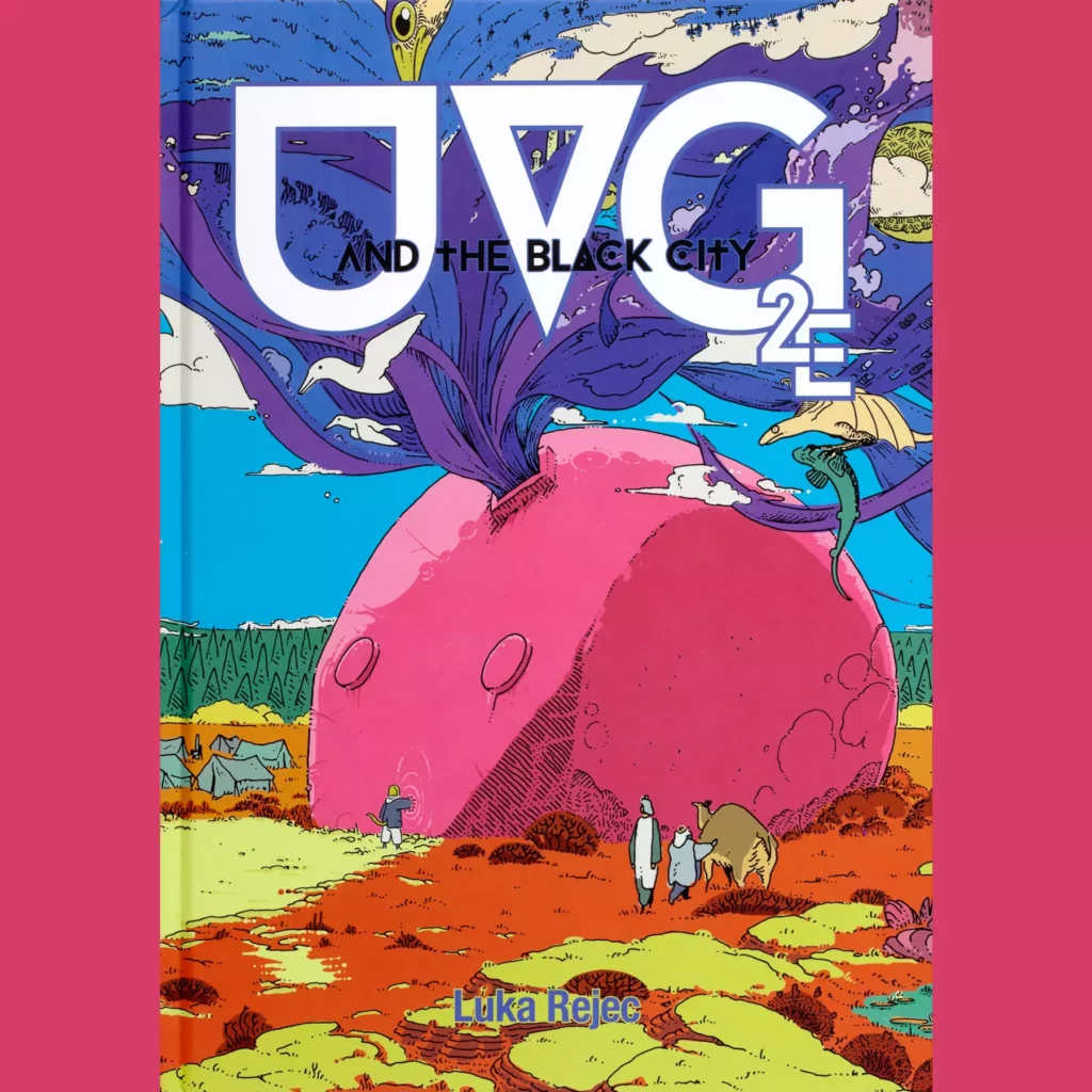 The main thing, though, the main attraction is the art. There is more of it, new, weird, mostly purple. Luka’s got a dizzying talent for creating curiously proportioned robots. His psychedelic landscapes are both strange and welcoming, dangerous but also kind of cozy. I am always down for new Luke Rejec art. And a lot of the old art is bigger. Which is kind of like being new, in its way.