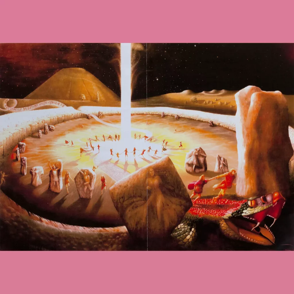 It is pretty great through. Father and teen son come to a town built inside a stone circle (modeled after Avebury, down to the crushed barber-surgeon, and filmed there). Dad’s an astrophysicist, son’s about to discover he’s a psychic. The town is presided over by Hendrick, a retired astronomer. Most of the villagers insist they are having a Happy Day, no matter what. There is a complex relationship between all these people, the stone circle (which sits above a massive stone dish), cosmic energies and a black hole in the constellation Ursa Major that plays out over and over in a time loop. The time loop has four main instances — the first in the megalithic era, the second in the medieval period, the third in 1976 and the fourth right as the action of the third resolves. Much is left murky and mysterious. A lot of people turn to stone. It’s damn good folk horror, mixing cosmic science with re-awakening ancient forces. I watched it recently, and it is still pretty scary!