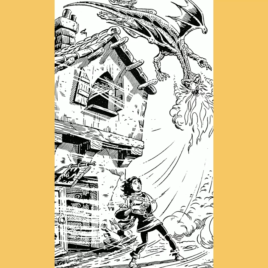 The book defies expectation though. The protagonist is a kid wizard and a prince of a kingdom that is currently being invaded. He wants to help with the fight and gets some dragon-related summoning/controlling magic items to do so. His companion isn’t an annoying talking animal, either. Rather, he’s got his badass elven tutor/bodyguard along for the ride.