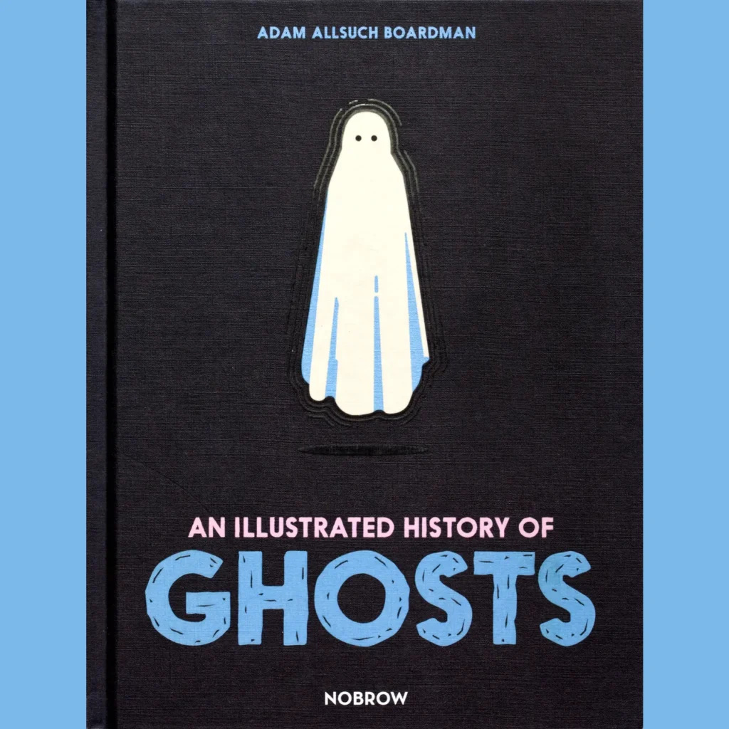 This is An Illustrated History of Ghosts (2022), by Adam Allsuch Boardman. Mr. Boardman is also a fan of Usborne’s All About Ghosts (I know this because a little illustration of the book appears in the bibliography in the back). Obviously, he is a fan of many other ghost books, but opening this thing for the first time was accompanied by such a firm feeling of…camaraderie? I struggle to describe in a way that doesn’t invoke Tod Browning’s Freaks. One of us, one of us. It was strange, but not unpleasant.