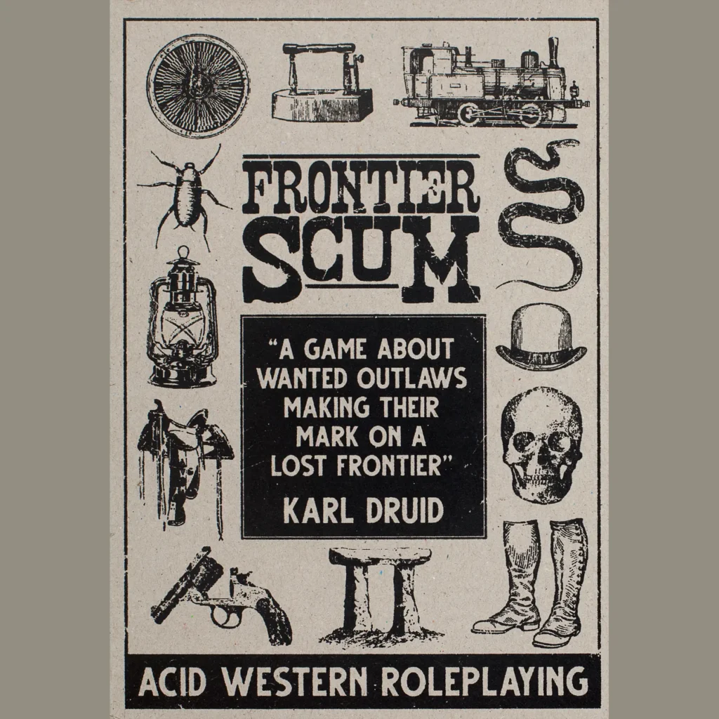 How to describe Frontier Scum (2022)? You would be forgiven for thinking it is a Western RPG like Boot Hill, or perhaps a Weird West game like Deadlands. But it is not. It claims to be an Acid Western, which is a film subgenre that I am not terribly familiar with. I think the best way to put it is that Frontier Scum is not set in the historical American West, but rather in the emotional landscape of that time and place. Sometimes that can be weird, but mostly it is ugly, dirty and violent.