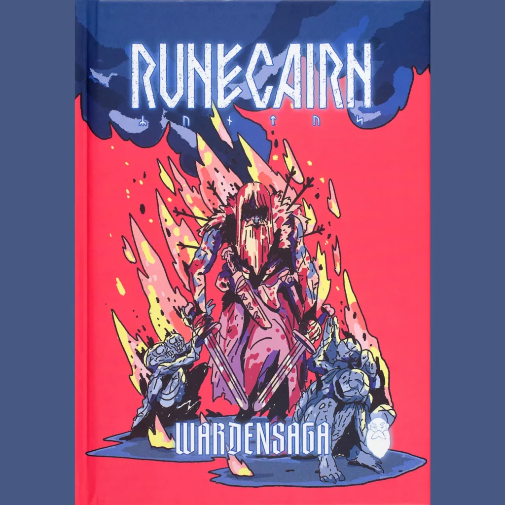 I guess it’s Rune Week? This is Runecairn: Wardensaga (2024), the remastered edition that collects the previous zines under one hardcover. A Norse-flavored hack of Cairn by Colin Le Sueur, it’s intended to be played as a duet game, that is: one player and one GM, though both solo and traditional group play are easy enough to finagle.