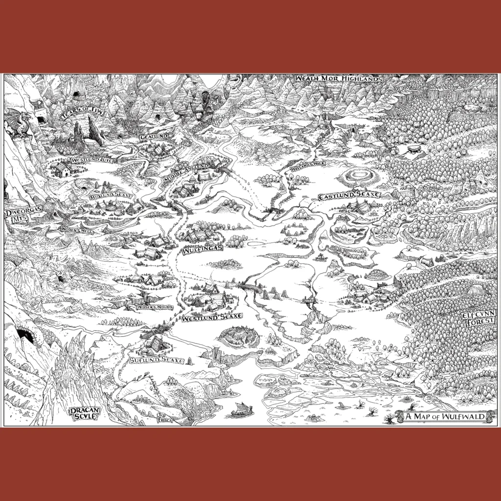 Wulfwald (2023) is an ambitious roleplaying box set designed by Lee Reynoldson and published by Lost Pages, a publisher I am increasingly impressed by. Katie Wakelin did the booklet cover, Stefano Accordi provides the interior illustrations and the gorgeous world map was done by the late, great Russ Nicholson.