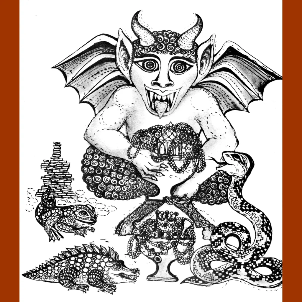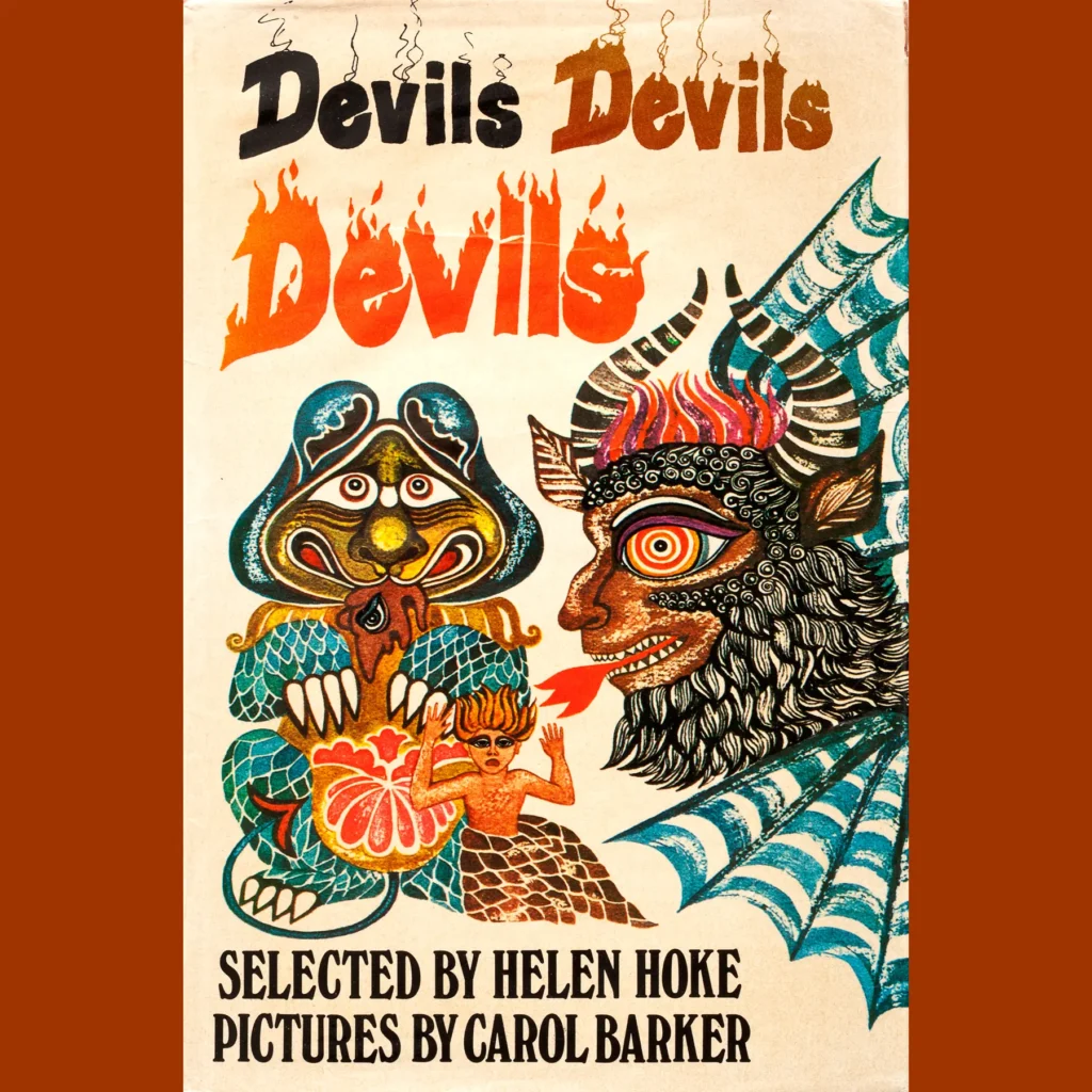 This is Devils Devils Devils (1975), the UK version, which features a marginally better cover. Carol Barker’s art does a lot of work selling the horribleness of the stories here. There aren’t a lot of bangers here, to be quite honest — the real headliner is Stevenson’s “The Bottle Imp.” The various retellings of folktales are OK, though nothing you wouldn’t expect, same with Stephen Vincent Benet’s “The Devil and Daniel Webster.” A. E. Coppard’s “The Devil in the Churchyard” is pretty good though.