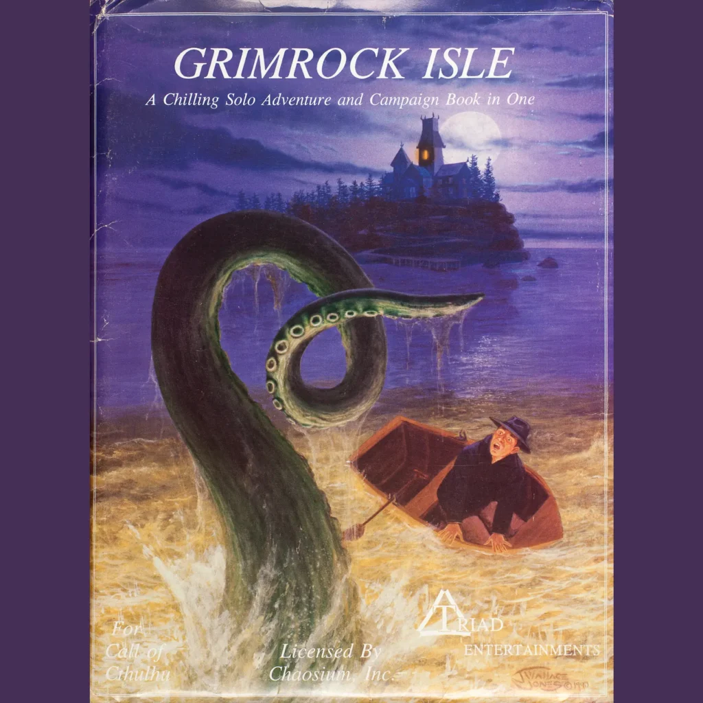 Now this is the stuff: Grimrock Isle (1992), an ambitious and unusual scenario — a solo and group scenario in one, contained in a folio folder full of booklets.