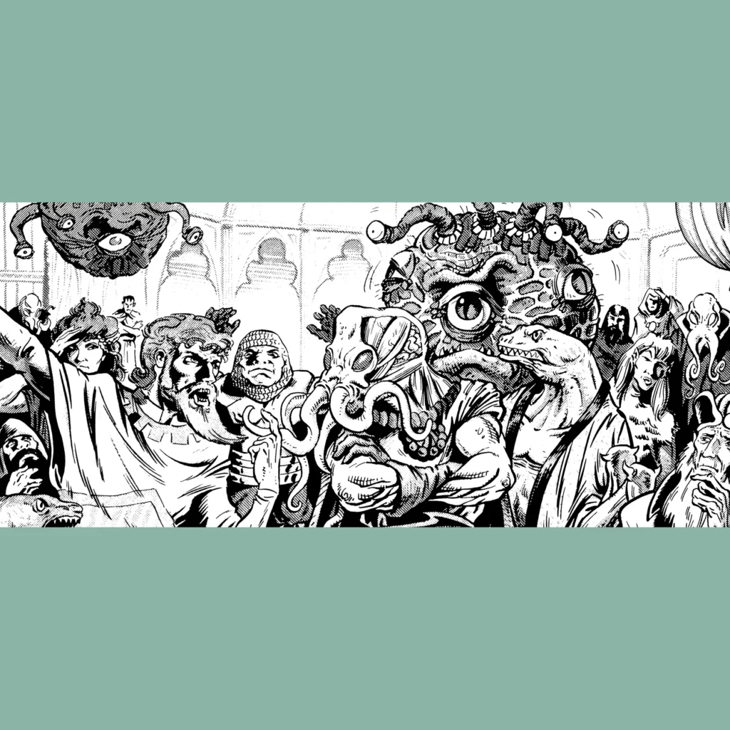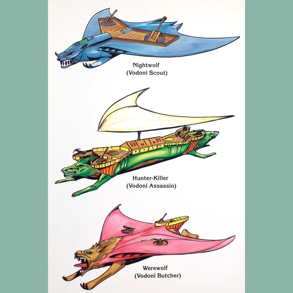 So, there are twelve conquered spheres in the Vodoni empire and Emperor Vulkaran the Dark wants three more: the spheres containing Greyhawk, Dragonlance and Forgotten Realms. Players organize an Alliance of free people on the Rock of Bral after encountering a Vodoni scout and sussing out the imminent invasion plans. I should note that the vodoni are variant werewolves and their ships are weird crosses between wolves and manta rays. Oh, and their emperor is a maeder, a male medusa?
