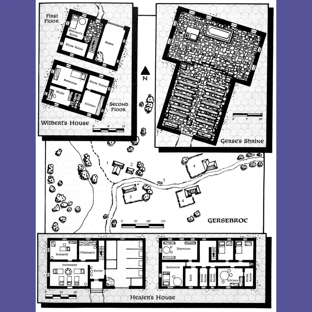 The first two scenarios are pretty solid. The first is the title tale, about about a vengeful witch in her treehouse, plotting against the town. I like this one a lot because the witch’s scheme is going to fail with or without the intervention of the players. That hardly ever happens. If she’s left alone, though, she’ll spill some innocent blood along the way. The second scenario involves brokering peace between the settlement and something big that is sort of menacing the area. Turns out to be a stone giant and the whole thing can be resolved with a riddle contest. Delightful.