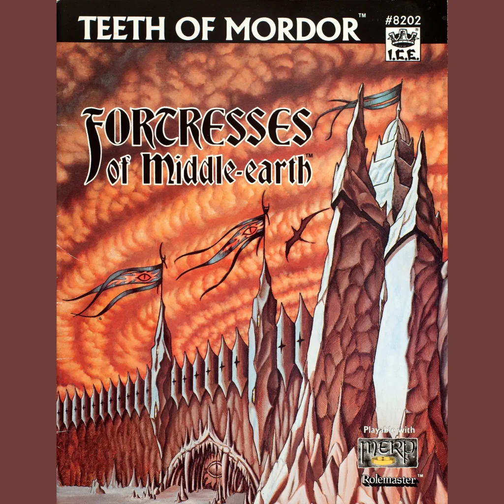 I’m getting ahead of myself, though. Iron Crown loved these sorts of sourcebooks so much that they created a sub-line devoted to them, Fortresses of Middle-earth. Three of them are places characters might actually visit — a beacon of Gondor, the hall of the Mirkwood elves and Weathertop before it was ruined — though they still aren’t terribly useful. Nazgul’s Citadel and this book, Teeth of Mordor (1988) are both not super useful and places players should never visit.