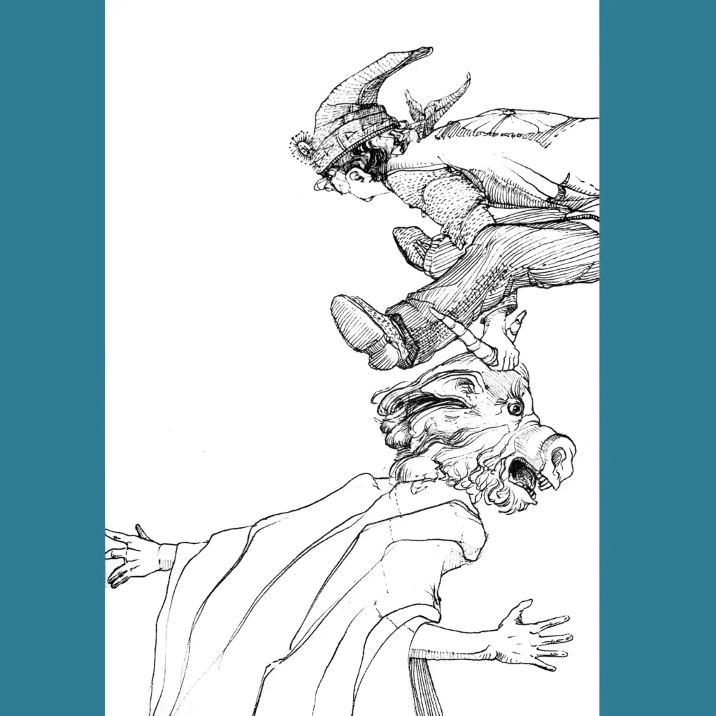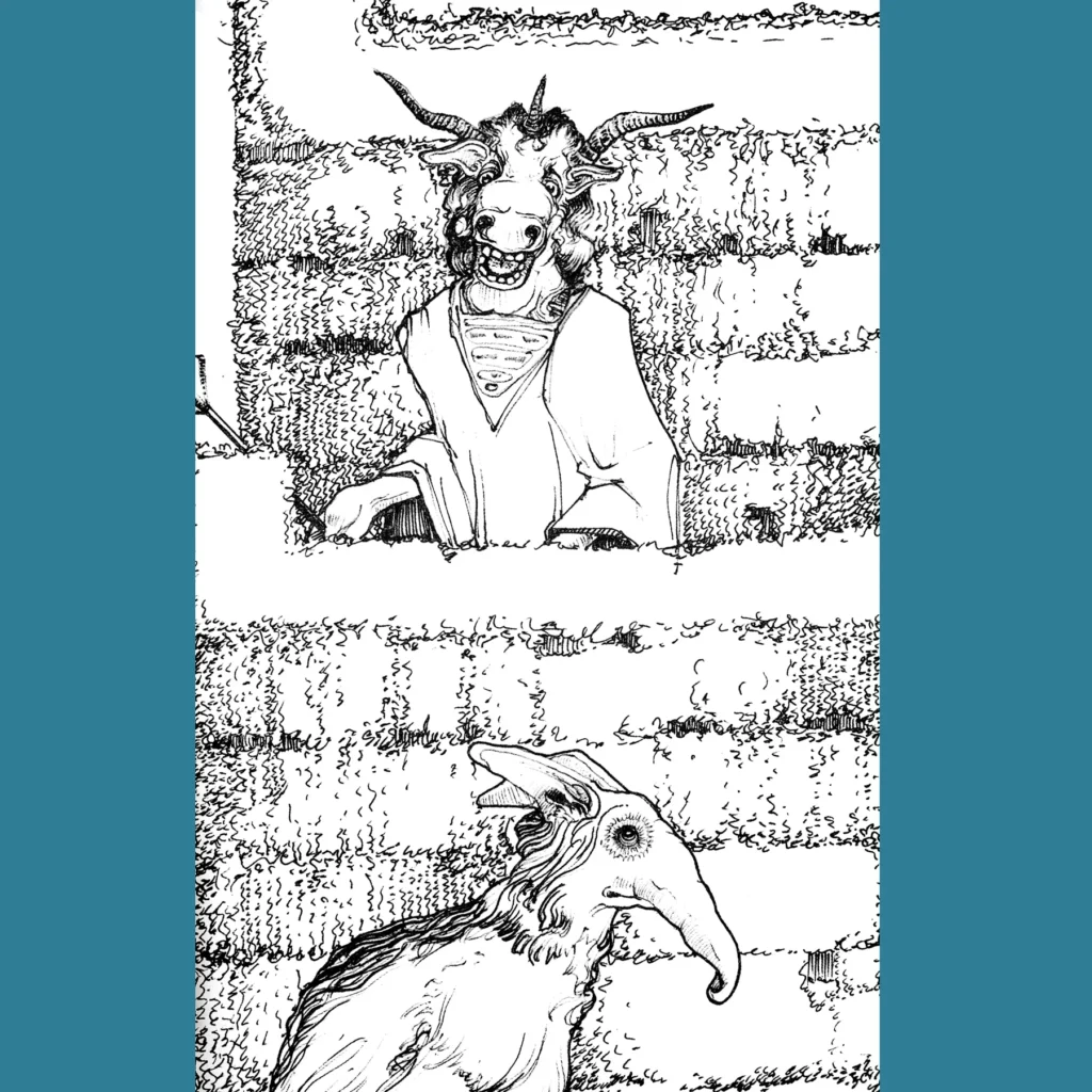 This is the first, The Masters of Mazes (1985), by Carol Gaskin and illustrated by T. Alexander Price. Yes, that Minotaur looks kind of doofy and the illustrations have a sort of happy, storybook quality to them, but I also think they are kind of unsettling. Look at the Minotaur’s eyes, how glassy they are. Look at the size of that mace. Why is there a ballerina? Why is the protagonist’s friend an ant-eater person? Why do so many of the illustrations feature odd crops or run off the page in unpleasant ways?