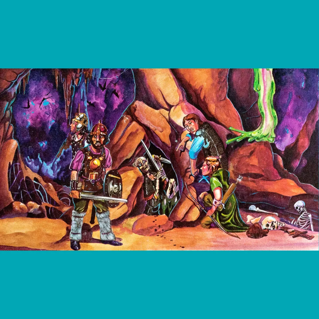 Boiled down, S4 is a series of wildness encounters and then a series of cavern encounters, split between the lesser and greater cavern sections. The motive is looting — the sorceress Iggwilv’s treasure horde is supposedly in the caverns and Iggwilv being long dead means it is ripe for the taking. Except previous expeditions never returned, yadda yadda yadda. That’s really the extent of the narrative thrust. The boss fight is with Iggwilv’s vampire daughter, who sleeps with her mom’s cool stuff and doesn’t seem to bother anyone otherwise unless you come in to try and steal it? There is a sort of plausibility to all the encounters (most of which are tactically interesting) so that the whole thing feels more “realistic” than White Plume Mountain, but I don’t think it hold up to scrutiny. This might not be “gonzo” but it is still more of a funhouse than, say, Barrier Peaks or Tomb of Horrors.
