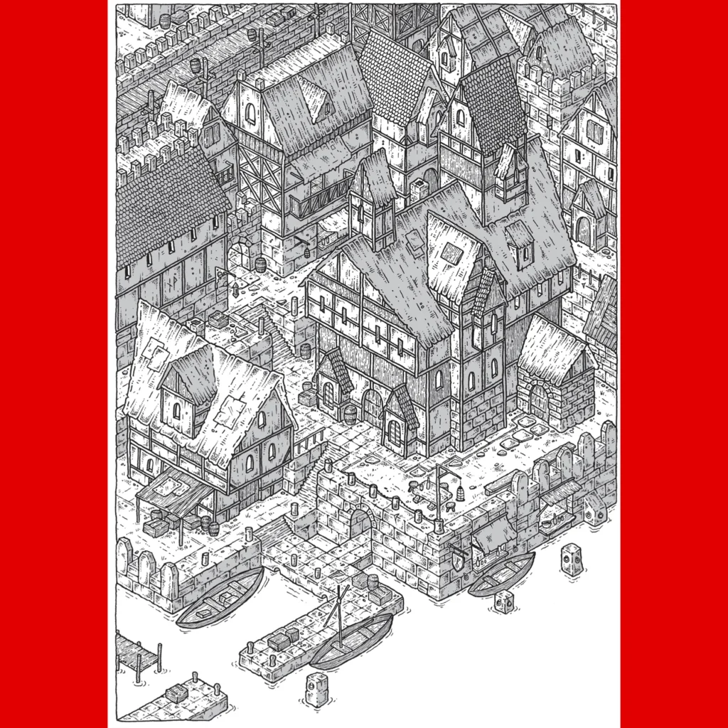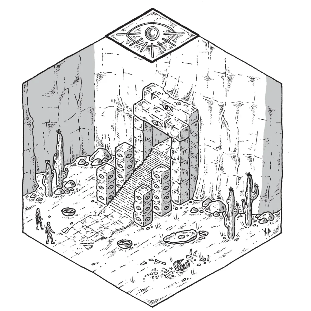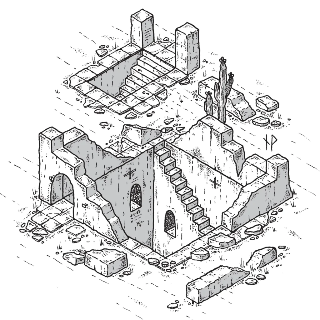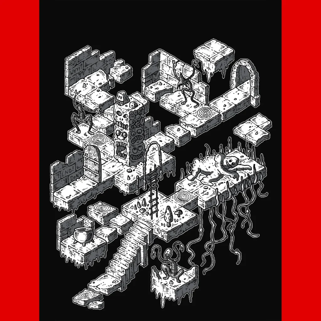 Expedition Log (2024) is a narrative art book illustrated by Paths Peculiar AKA Niklas Wistedt (with text by Wistedt and Andre Novoa). Paths Peculiar is one of the first accounts I followed after starting Vintage RPG on Instagram; he primarily draws isometric maps and architectural views in a highly detailed, slightly cartoony style that evoked Russ Nicholson’s work to some degree. One of the first pieces I saw was an isometric adaptation of the temple of Zuul from the climax of Ghostbusters. I still think about that one sometimes.