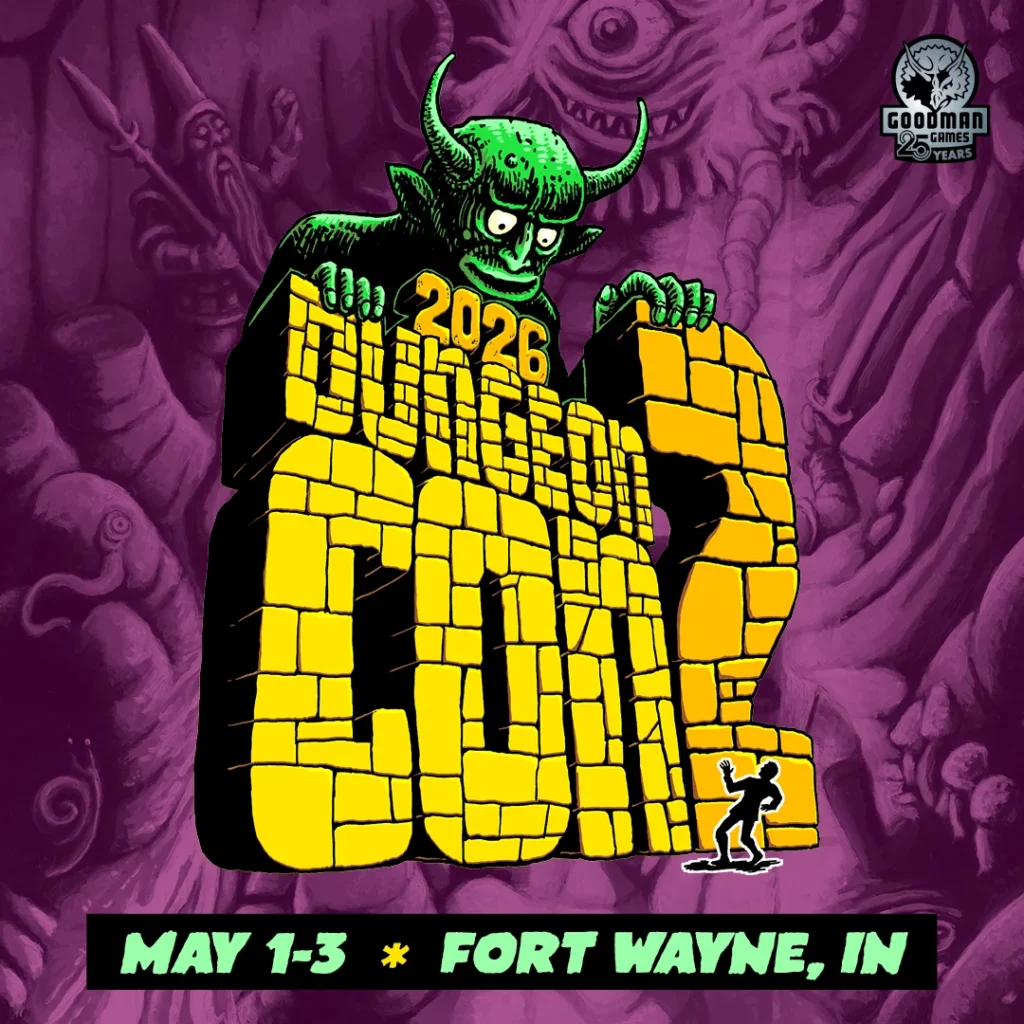 I’m also booked for Dungeon Con 2, which takes place at Goodman Games’ Fort Wayne warehouse, May 1 to May 3. That’s right, I’m going to Indiana not once, but twice this year. Really tempting fate after my previous trips to Indiana. Anyway, assuming I survive, Dungeon Con sounds like it’s going to be a ton of fun. There’s a warehouse sale and I’ll be sitting on a couple panels and even running games. I’m thinking Scritch Scratch for Call of Cthulhu. Might have to practice that a couple times with the West Marchers. If you’ve got ideas for other Con-ready scenarios, lemme know.