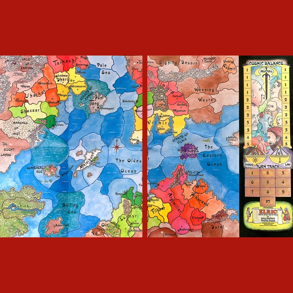 Unlike those games, I feel like Elric is more consciously a kind of playground for fans of Moorcock’s novels. There are modes of play that seems to aim to emulate the stories, but there are others that are very much in the fuck around and find out school of play. I, for one, would very much like to see Pan Tang versus the rest of the world play out! Because of this sense of anything-goes, I think the game probably plays a bit faster and easier than its cousins.