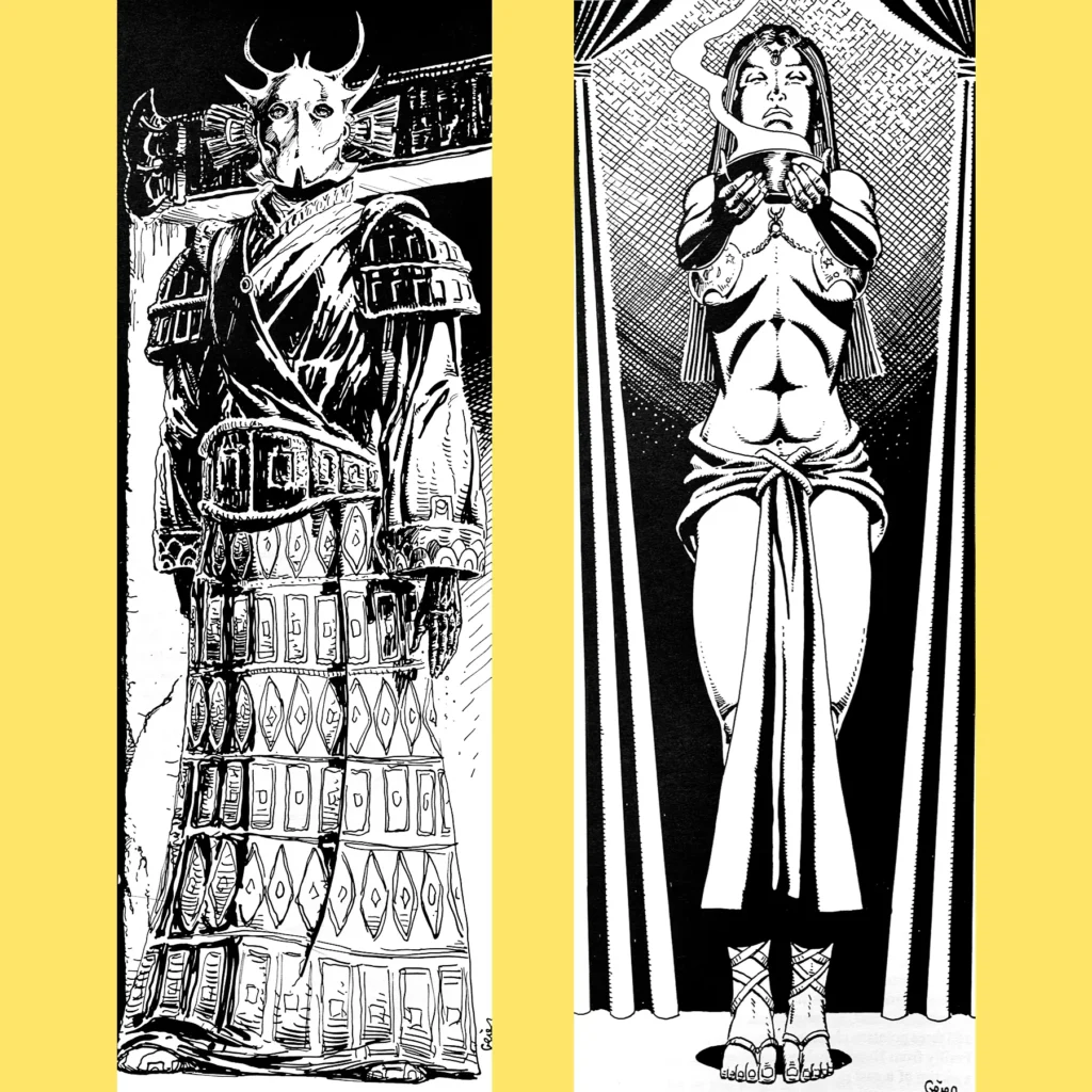 Anyway, this brief book (80 pages!) is dedicated the expanding the game’s magic. First up is rune magic as derived from the Moorcock stories; these provide ongoing buffs or single use effects. Necromancy brings, well, necromancy into the game, which function basically as expected but with some aesthetic darkening. Much space is devoted to moving souls around in order to protect them. This section has an Earl Geier illustration of a Melnibonéan mummy that is maybe my favorite in the whole book. There’s also a selection of undead monsters, which is nice to have on hand.