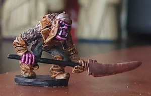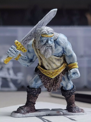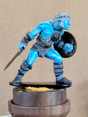 After a break that lasted much too long, I'm trying to get some serious painting time in before I have to pack up the workshop for the winter (it probably isn't likely, but I am terrified of my paints freezing). This week, I tackled a Frost Giant (really a Firbolg, but hey, don't tell me what colors to use, this is a medium of expression!), a Roper and a grizzled Orc spearman for my rather neglected Orc army.