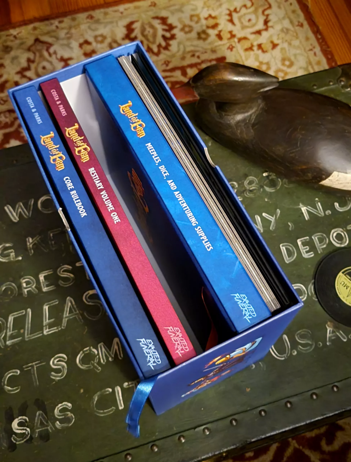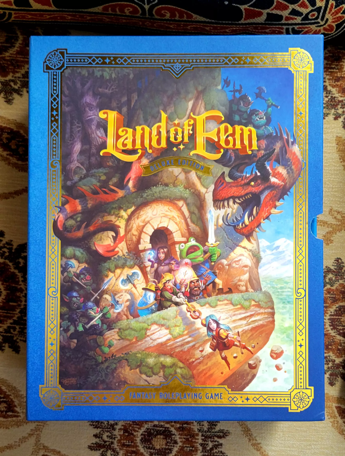My copy of Land of Eem showed up. It's gigantic and beautiful. I looked through it for about three seconds before I started wondering if this was going to be the first proper RPG I ran for my son. It's got a good sense of whimsy, but still seems dangerous. Whoever called it D&D+Muppets nailed their assessment of the vibe.