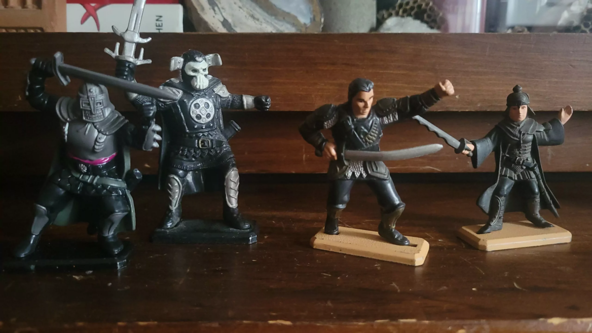Anyway, I'm not going to play through the videogame again, but I did find myself getting surprisingly nostalgic for the line of not-very-exciting Willow toys from Tonka. They're PVC sculpts mounted on little metal plates, similar to (though bigger than) Britains' line of knights. I had General Kael, the Troll (only briefly, though, because he vanished into the hinge of the back seat of the car and was never fished out) and the extremely cool Nockmaar Lieutenant (left). No heroes, because that's how I rolled as a kid. Now I have like, all of the unmounted ones, except Bavmorda. Thank eBay. What the heck am I gonna do with these? |