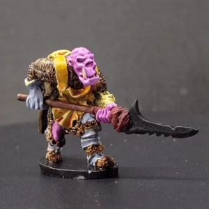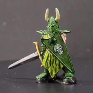 It occurs to me, too, that I didn't share the last batch I did, so they're here too. Another orc for the army, a Ral Partha anti-paladin and a sinister-looking mushroom guy. |