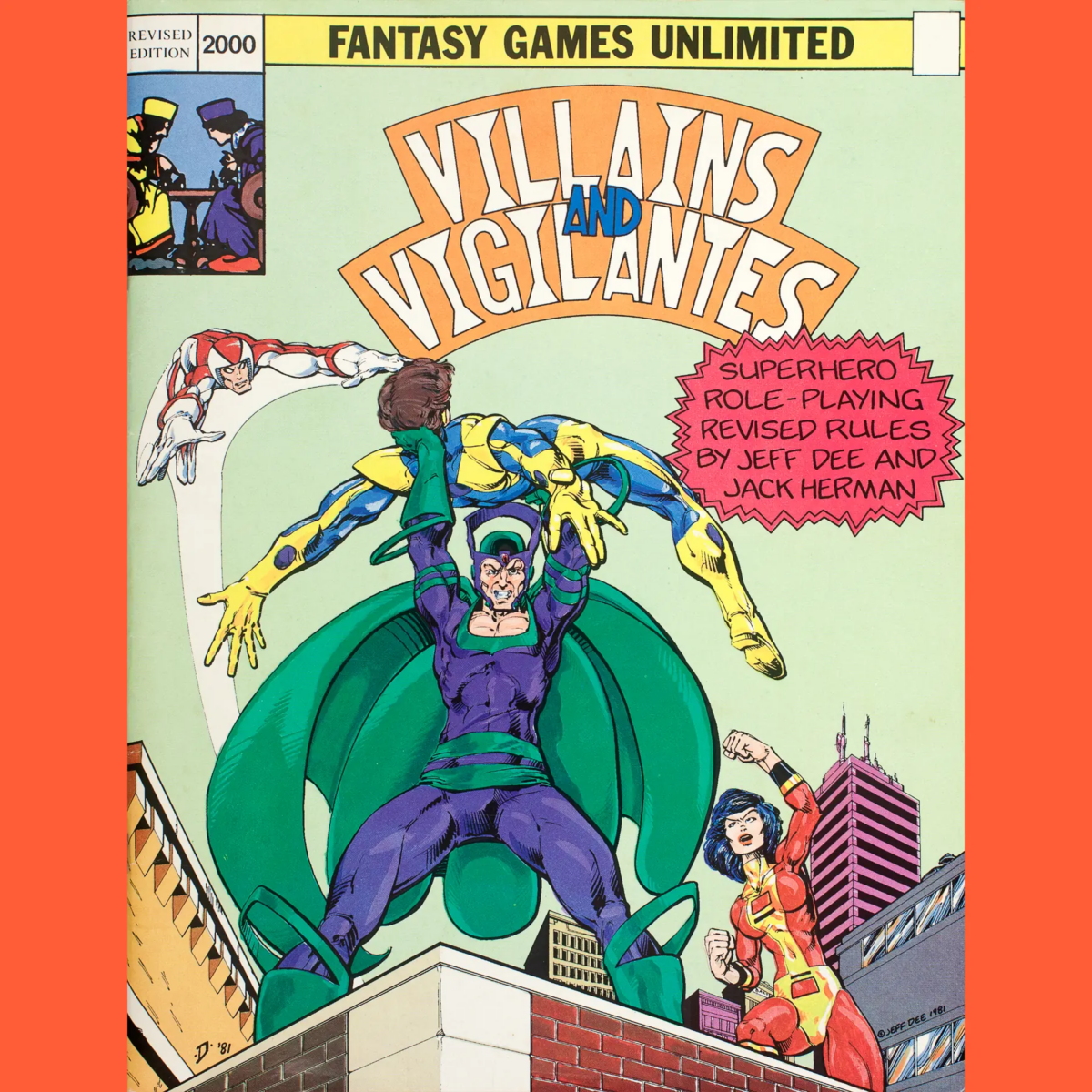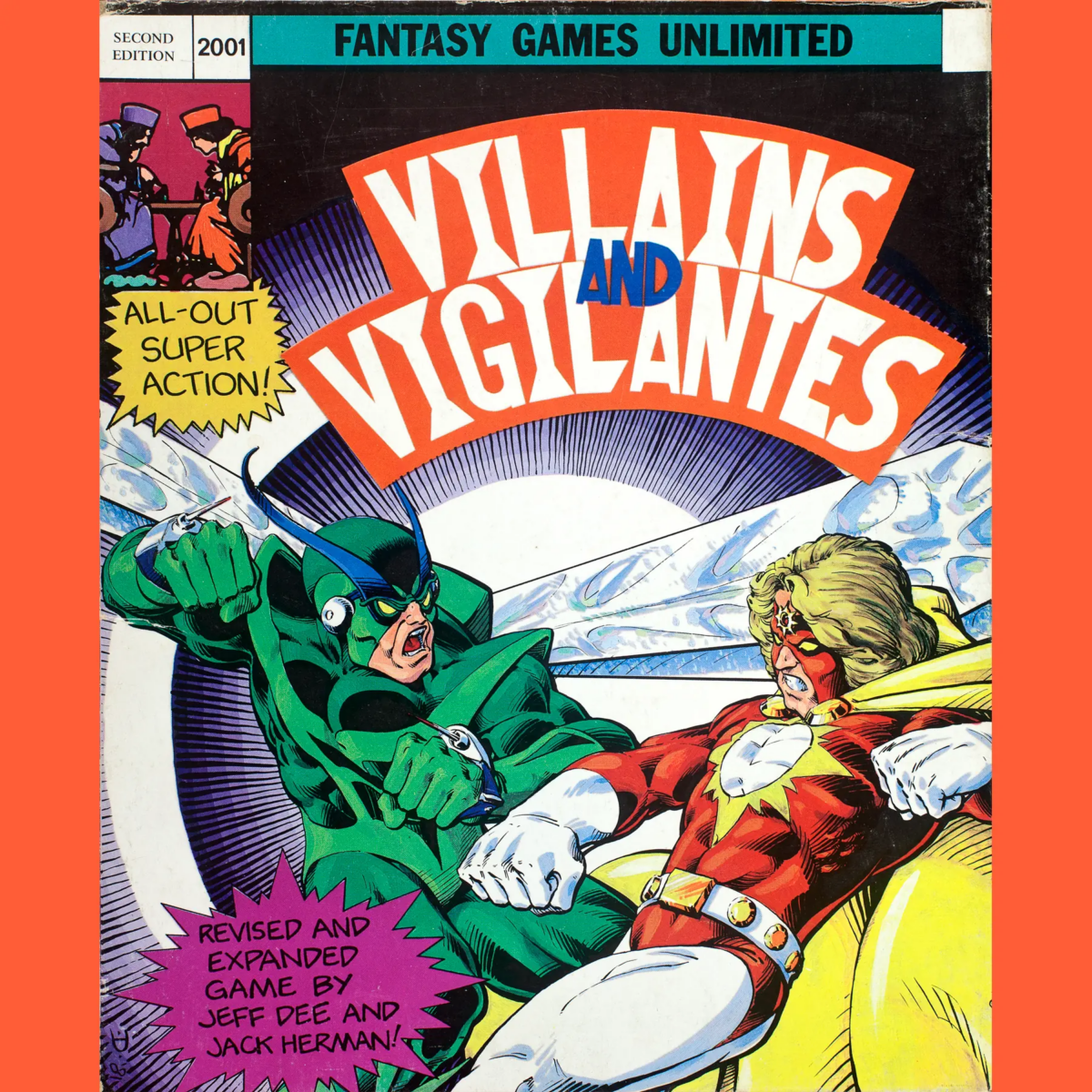 Lotta folks have been waiting a long time for this one: Villains and Vigilantes! This is the revised edition, from 1982, but the game originally came out in 1979. Both editions were published by Fantasy Games Unlimited.